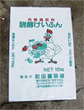 - 堆肥化した製品は有機質肥料の「発酵鶏ふん」として製造者名と成分を表示のビニール袋に袋詰めし、主に農協を通じて全量販売しています。