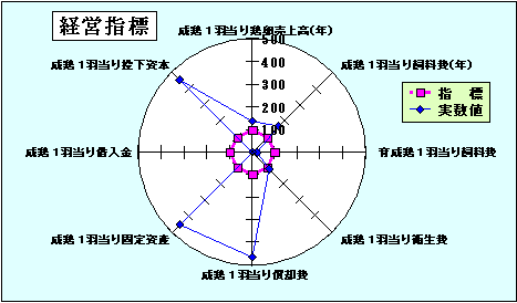 借入金が無い健全経営である。投下資本が高いため償却も高く、経営を圧迫している。飼料費及び衛生費がやや高い。