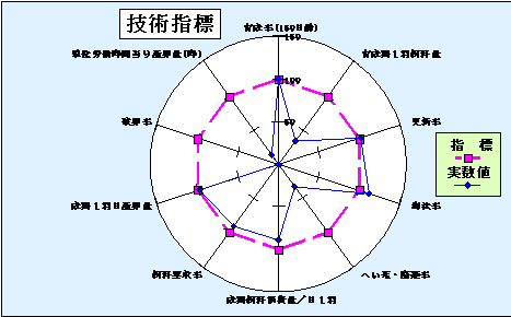 各項目指標値に近い数値を示しているが、単位労働時間当たり日産卵量が低くい。これは、販売に費やす時間が長いためと考えられる。破卵率、へい死率も低く、良好である。