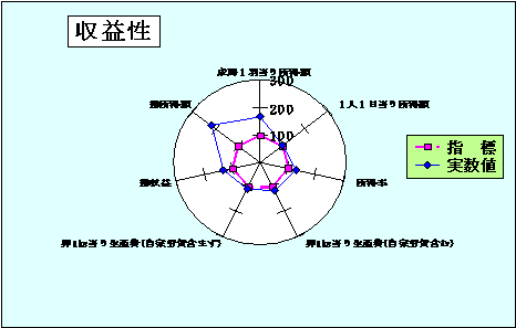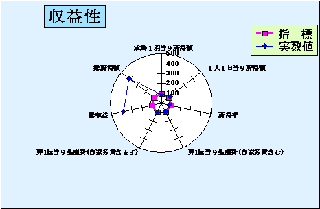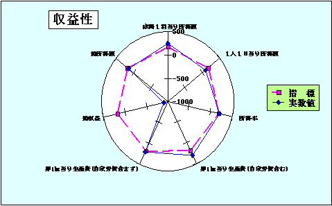 総所得額、所得率等は指標並の数値であるが、総収益は低くなっており、人件費がかさんでいるためである。 |