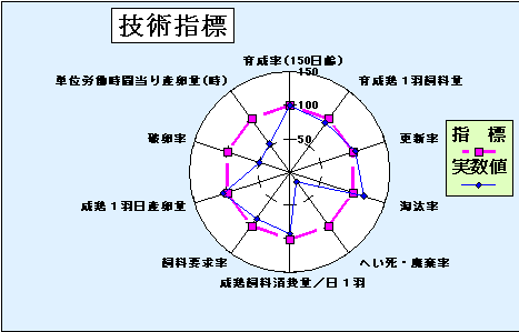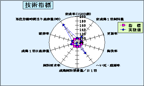 単位労働時間当たり産卵量が高く、効率的な労働管理がされている。更新率、淘汰率が低いが産卵制御を導入している結果と考えられる。へい死が高いので鶏舎環境の適正なコントロールに努めることが肝要と考えられる。