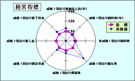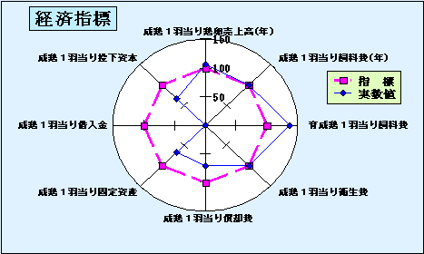 大規模養鶏で総所得額は高く、総収益も指標の約3倍と労働費の節約が見受けられ、合理的な経営がなされている。 |