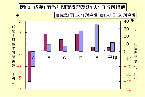 羽数が少なく、投下資本が高いため収益性は良くない。また、総収益が低いのは労賃が多いためである