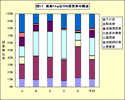 雇用費は飼養羽数が少なく自家労力で乗り切ろうとする経営では当然ながら少ないが、雇用費の平均は20.8円/kgであった。